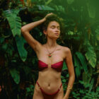 Bas de maillot de bain triangle , coupe tanga parfaite pour limiter les marques de bronzage avec anneaux réglable sur les côtés