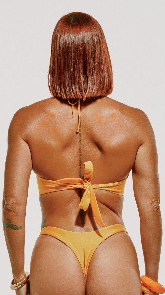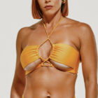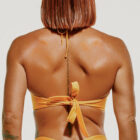 Élégant et audacieux, le haut Naïade sublime la silhouette avec son jeu de découpes et de liens croisés. Sa matière satinée au fini lumineux capte la lumière et met en valeur le bronzage.