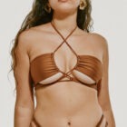 Élégant et audacieux, le haut Naïade sublime la silhouette avec son jeu de découpes et de liens croisés. Sa matière satinée au fini lumineux capte la lumière et met en valeur le bronzage.