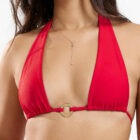 Alliant style et élégance, le haut TANGERINE est un bikini de type dos-nu rehaussé d’un anneau doré à l’avant, signature raffinée de la collection. Sa bande plus épaisse offre un maintien optimal, tandis que les liens réglables autour du cou assurent un ajustement personnalisé.